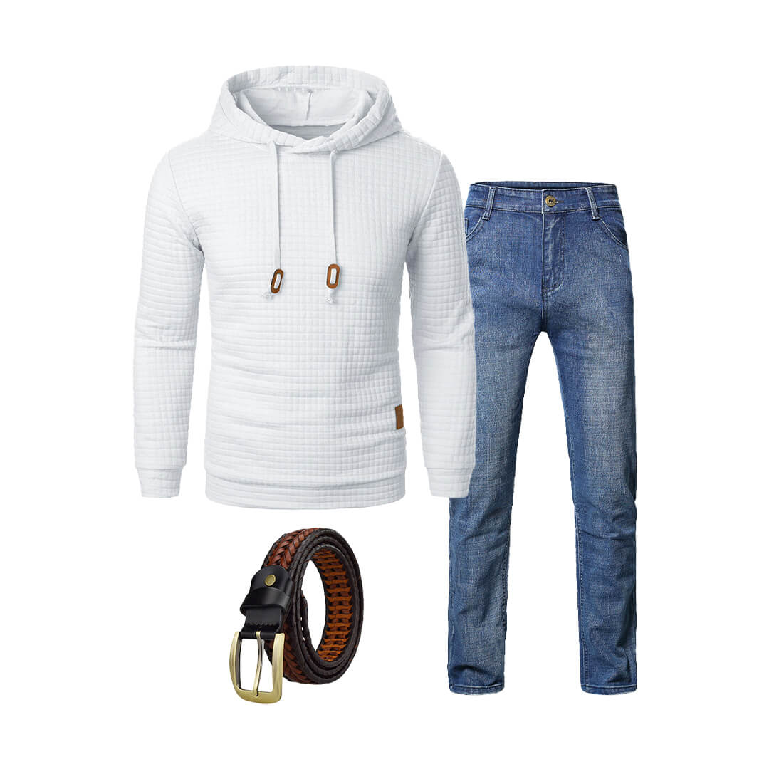 Pensado para acompañarte durante todo el día, este pack une comodidad, durabilidad y elegancia casual en piezas esenciales que funcionan tanto en entornos relajados como en salidas informales. Un conjunto práctico que eleva tu armario con una presencia sofisticada y segura.
